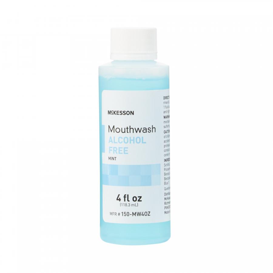 Keep teeth and gums healthy by using McKesson mouthwash as part of a daily oral care routine. Swishing it around the mouth allows the liquid to get between teeth and flush out food particles, which curtails the formation of cavities and appearance of plaque. The mouthwash is suitable for use as an oral rinse after meals as well as for applying to the ends of foam swabs. With an alcohol-free formula, it's gentle on sensitive skin inside the mouth and won't burn or sting. A mint flavor refreshes and invigorates while leaving breath smelling fresh and pleasant. Have unique embossing that catches and holds liquids