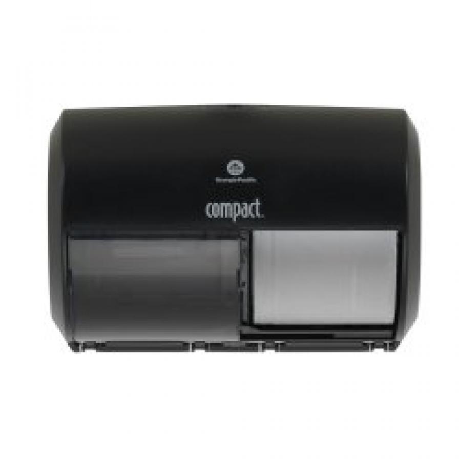 Georgia Pacific Toilet Tissues Dispensers Compact 2-Roll Side-by-Side Black Plastic Manual Double Roll Wall Mount, Plastic, Black, 1 Count, #56784A
