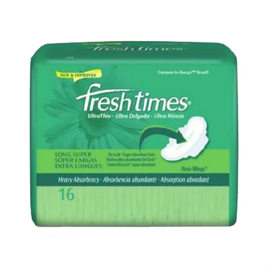 First Quality Fresh Times Freshtimes Thick Maxi pads provide superior absorbency and leak protection with their thick core and flexible wings. They conform to the body for a customized fit and feature a breathable cover that promotes skin health. With a generous count of 16 individually wrapped pads, they offer convenience and peace of mind during heavy flow days.