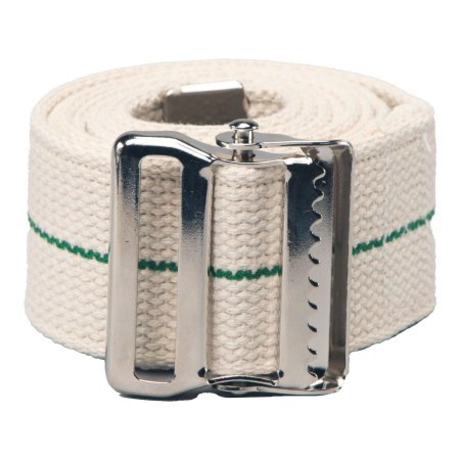 Tidi Products Posey Gait Belt, White / Green Stripe, 54 Inch Length, Cotton, Metal Drop Jaw Buckle, Without Handles, 50 Count, #6556S