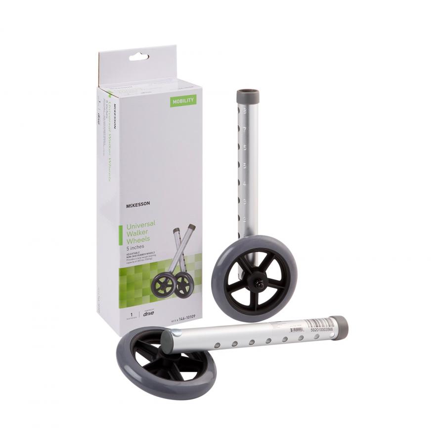 McKesson Universal Walker Wheels, Aluminum/Rubber, 5 Inch, For Use with 1-inch Frame Diameter Walkers, Silver/Gray, 1 Pair, #146-10109