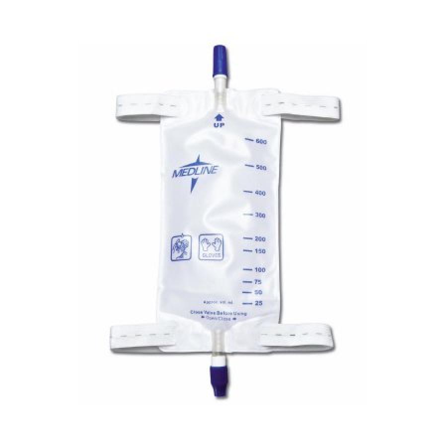 Medline Urinary Leg Bags, Comfort Strap, Graduated, Sterile, Anti-Reflux Valve, 600 mL, Without Additive, Twist Valve, 48 Count, #DYND12574