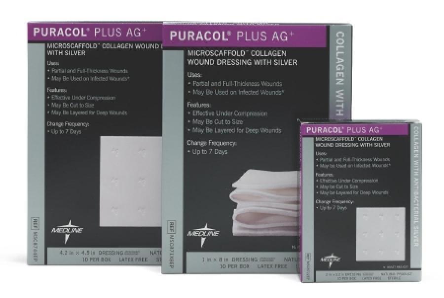 The Medline Puracol Plus AG Collagen Dressing is a leading wound care solution that combines the benefits of purified collagen and antimicrobial protection. Its high-purity collagen promotes cellular proliferation and tissue regeneration, while the silver impregnation provides broad-spectrum antimicrobial activity to guard against infections. The porous structure effectively absorbs excess exudate, creating an optimal healing environment. Its conformable and moldable design allows for easy application to complex wounds, ensuring a secure fit. The ready-to-use dressing simplifies wound management, saving time and effort. Indicated for a wide range of wounds, from pressure ulcers to diabetic foot ulcers, the Medline Puracol Plus AG Collagen Dressing is proven to accelerate healing, protect against infection, and facilitate easier wound care.