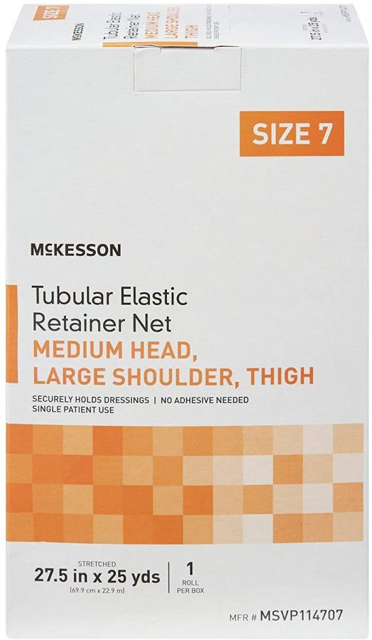 McKesson Tubular Elastic Retainer Net Dressing, Elastic, Tubular, Medium Head/Large Shoulder/Thigh, Size 7 (27.5 Inches x 25 Yards), White, Non-sterile, Latex-free, #MSVP114707