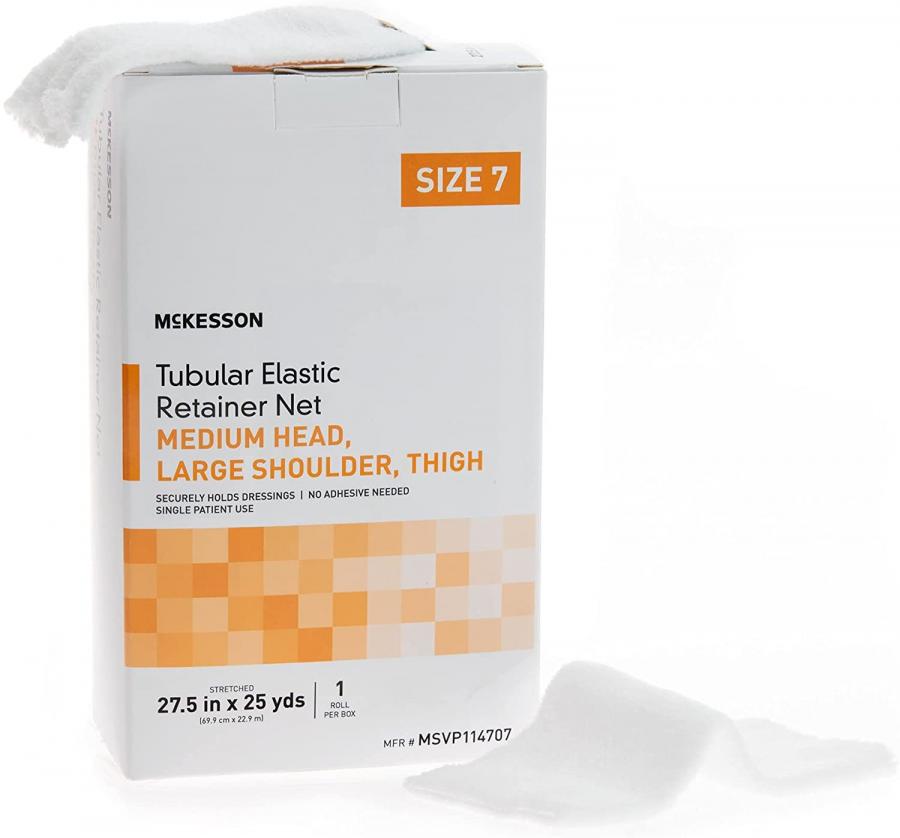 McKesson Tubular Elastic Retainer Net Dressing, Elastic, Tubular, Medium Head/Large Shoulder/Thigh, Size 7 (27.5 Inches x 25 Yards), White, Non-sterile, Latex-free, #MSVP114707