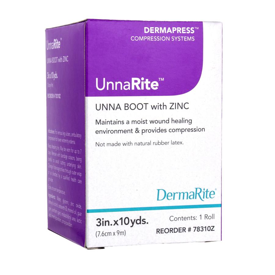 Dermarite UnnaRite Unna Boot with Zinc Oxide, Non-Sterile, White, Gauze, 3 Inch x 10 Yard, 1 Count, #78310Z