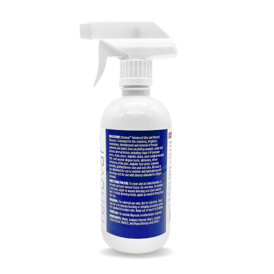 Renovar Advanced Wound Cleanser Spray Bottle is a powerful and effective solution for wound care. This innovative spray utilizes hypochlorous acid, a naturally occurring compound produced by the human body, to cleanse and disinfect wounds. The non-cytotoxic formula is gentle on the skin while effectively removing contaminants and debris, promoting a healthy healing environment. Renovar Advanced Wound Cleanser is ideal for a variety of wound types, including pressure ulcers, diabetic ulcers, and surgical wounds.
